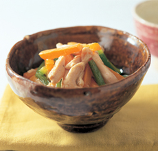 굵게 채썬 다음 굴소스, 청주, 후춧가루, 녹말을 넣고 버무려놓는다.