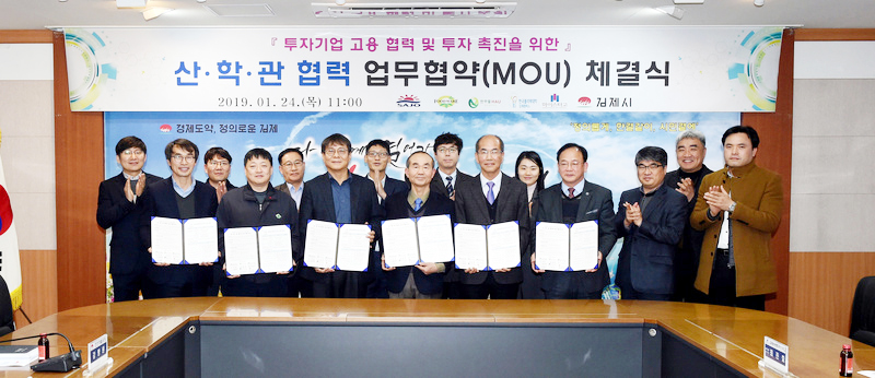 (주)사조화인코리아(대표이사 이창주)는 지난 1월 24일 김제시청 2층 상황실에서 증설 투자기업의 고용 지원을 위한 산·학·관 업무협약(MOU)을 체결했다.