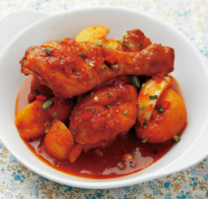 6_닭다리와 감자가 어느 정도 익으면 당근, 양파를 넣고 익을 때까지 끓인 뒤 고추와 파를 넣고 한소끔 끓여 완성한다.