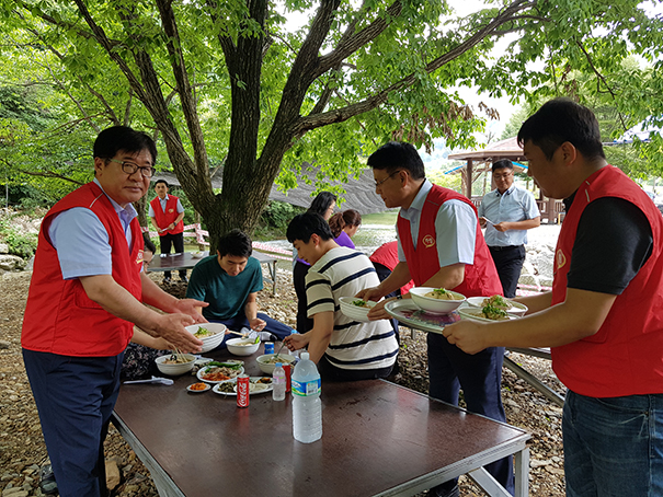(주)하림은 지난 7월 22일 중복을 맞아 1사1촌 협약식을 맺은 마조마을을 찾아 농사일도 돕고 삼계탕을 대접했다.