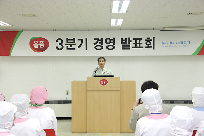 (주)올품(대표이사 변부홍)은 지난 7월 1일 본사 대강당에서 임직원이 참석한 가운데 3/4분기 경영발표회를 가졌다.