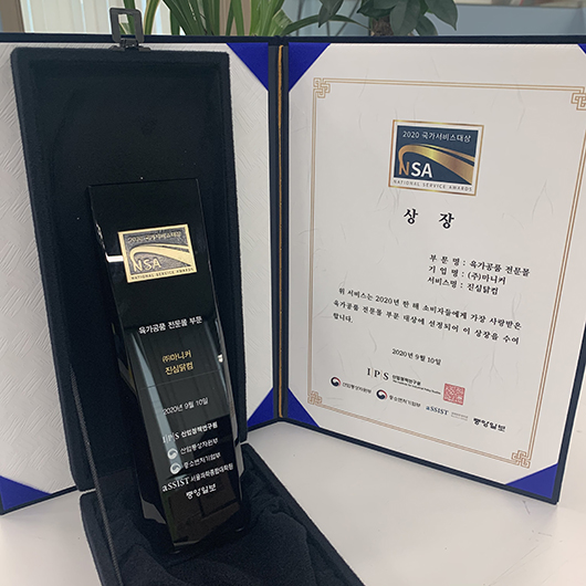 (주)마니커, 진심닭컴, 2020 국가 서비스 대상 수상