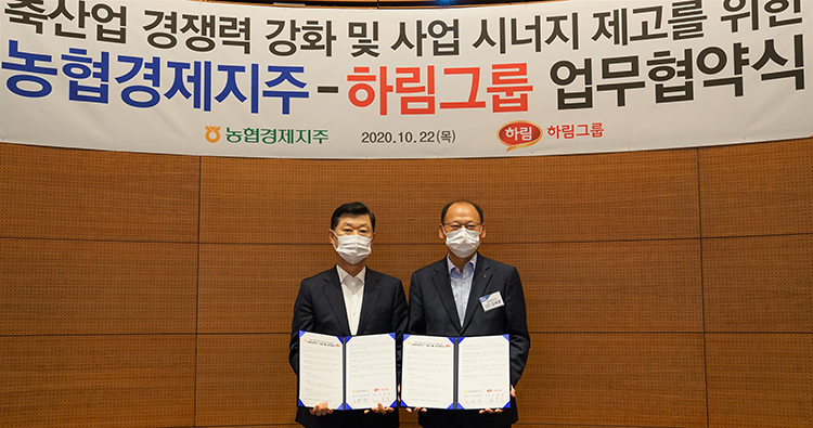 하림그룹(회장 김홍국)과 농협경제지주(축산경제 대표이사 김태환)는 국내 농축산업의 발전과 경쟁력 강화를 위해 다각적으로 협력분야를 확대키로 했다. 특히 양 사가 전략적 파트너십을 체결함으로써 농업인 소득증대, 유통물류 효율화를 통한 시장경쟁력 및 소비자 신뢰 제고에 시너지를 발휘할 것으로 기대하고 있다.
