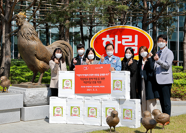 (주)하림(대표이사 박길연)이 어린이날을 맞아 아침머꼬 프로그램 참가 학생들에게 특별한 선물을 전달해 훈훈함을 전했다.