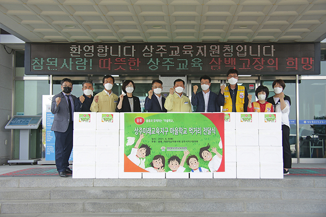 (주)올품은 지난 6월 8일 경상북도상주교육지원청(교육장 김종환)을 방문해 닭고기 간식 105세트를 기증했다.