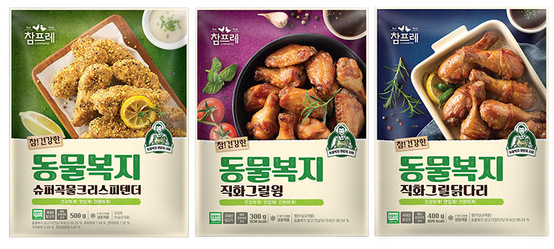 (주)참프레(대표이 고흥열)는 동물복지 슈퍼곡물크리스피텐더, 직화그릴윙, 직화그릴닭다리 신제품 3종을 출시했다.