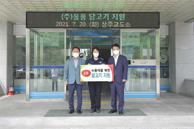 (주)올품(대표이사 변부홍)은 지난 7월 20일 상주교도소에 방문해 수용자들의 건강한 여름나기를 돕기 위해 닭고기를 후원했다.