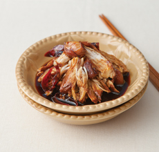 5_그릇에 닭 가슴살을 적당한 크기로 찢어 담고 국물을 살짝 끼얹어 상에 낸다.