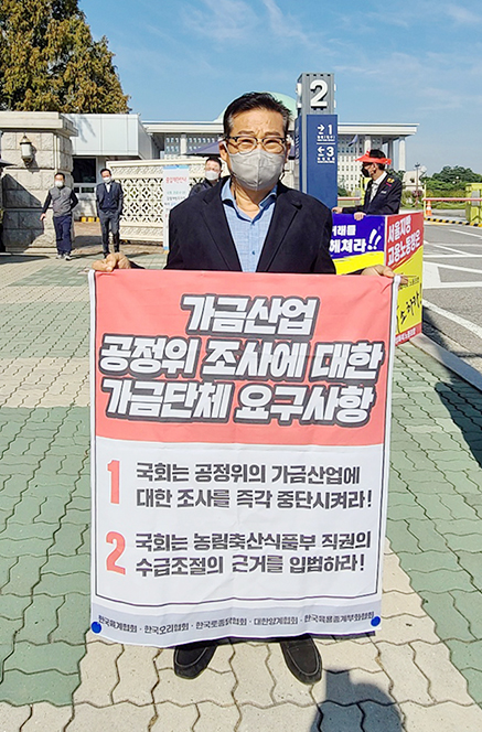 가금산업 공정위 조사 규탄 1인 릴레이 시위 진행
