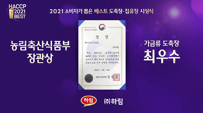 (주)하림, ‘2021 소비자가 뽑은 베스트 도축장’ 가금 부문 최우수상 수상