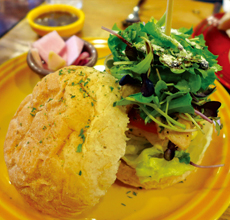 필자는 ‘루꼴라 치킨 햄버거’와 ‘블랑드 플레 샐러드’를 주문했다. 루꼴라 치킨 햄버거는 허브와 우유에 숙성시킨 닭안심을 소금, 후추로만 가볍게 구워 루꼴라와 함께 먹는 고담백 버거다. 도톰하지만 부드럽고 촉촉한 버거빵, 아삭하게 씹힐 정도로 신선한 친환경 야채, 토마토, 치즈, 그리고 닭고기 안심이 곁들여져 최상의 맛을 낼 뿐 아니라, 건강식을 먹는다는 느낌이 들 정도다(이날은 루꼴라가 떨어져 어린채소로 대체됨).