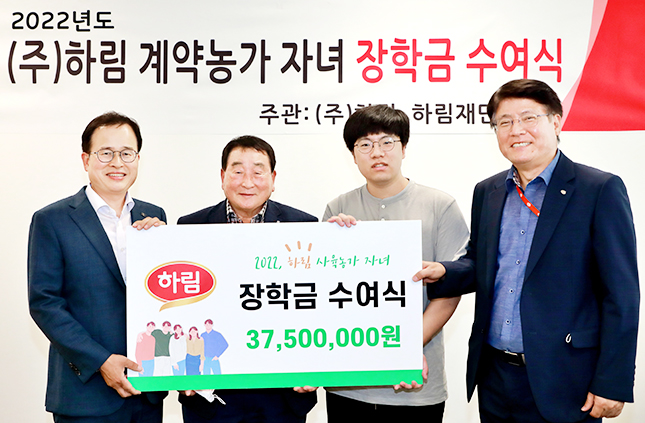 (주)하림이 (재)하림재단과 함께 지난 7월 14일 익산 하림지주 사옥에서 ‘계약농가 자녀 장학금 수여식’을 진행했다.
