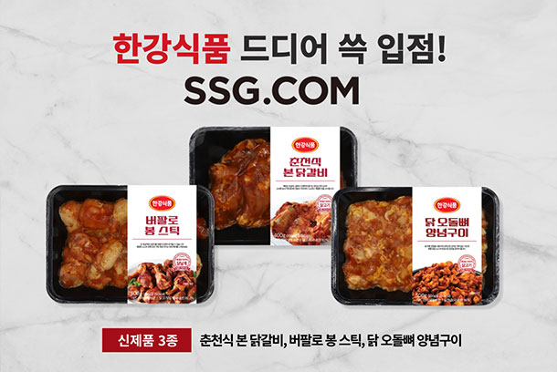 (주)한강식품은 지난달 '춘천식 본 닭갈비', '버팔로 봉 스틱', '닭 오돌뼈 양념구이' 신제품 3종이 SSG닷컴(https://www.ssg.com)에 입점되었다고 밝혔다.