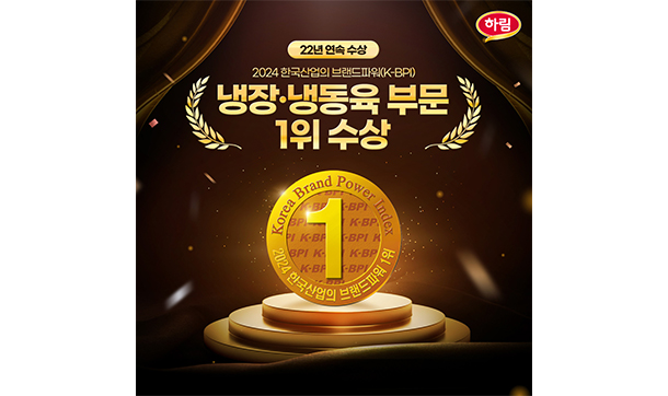 (주)하림(대표이사 정호석)이 '2024 한국산업의 브랜드파워(K-BPI) 조사'에서 냉장·냉동육 부문 1위를 수상하며 22년 연속 정상을 차지했다.