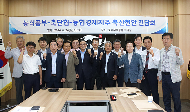본회 김상근 회장은 지난 6월 24일 오후 세종시 토바우식당에서 농림축산식품부 축산정책국, 축산관련단체협의회(회장 손세희), 농협경제지주(대표 안병우)가 함께 하는 '축산업 정책방향 농의를 위한 소통 간담회'에 참석해 농업 주무부처로서 농림축산식품부가 축산인의 권익향상을 위해 보다 적극적으로 노력해줄 것을 요청하는 한편, 축산물 수입증가 등에 대응해 정부가 국내 축산업 발전을 위해 적극적으로 대책을 마련해줄 것을 건의했다.