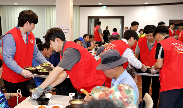 (주)하림(대표이사 정호석)이 지역 어르신들의 여름철 건강을 기원하기 위해 삼계탕 배식봉사 '사랑의 맛데이'를 진행하며 ESG경영을 실천하고 있다.