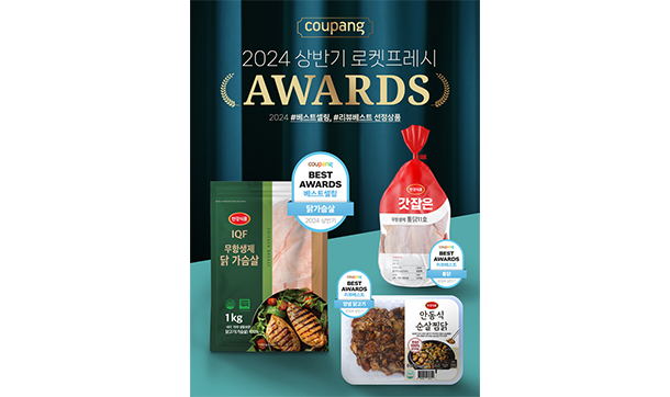 (주)한강식품은 자사 제품 중 1QF 무항생제 닭가슴살이 2024 상반기 로켓프레시 어워즈 베스트 셀링 제품으로, '무항생제 인증 갓잡은 통닭 11호'와 '안동식 순살 찜닭은 리뷰 베스트로 각각 선정됐다고 지난 7월 5일 밝혔다.