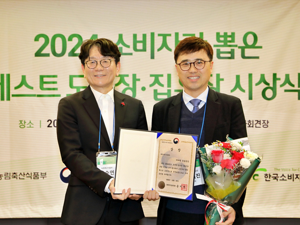 (주)하림(대표이사 정호석)이 지난해 12월 20일 한국프레스센터에서 개최된 '2024 소비자가 뽑은 베스트 도축장·집유장' 시상식에서 가금류 부문 최우수상을 수상했다고 밝혔다.