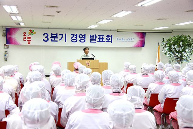 (주)올품(대표이사 변부홍)은 지난 7월 2일 본사 대강당에서 임직원 500여명이 참석한 가운데 3/4분기 경영발표회를 가졌다.