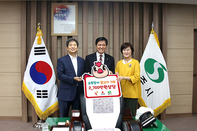 (주)올품은 지난 7월 12일 2,700만원 상당의 닭고기 5천8백마리를 경북사회복지공동모금회(회장 신현수)에 쾌척했다.