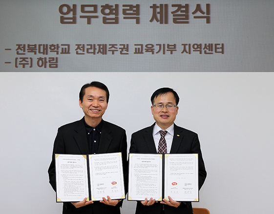 (주)하림(대표이사 박길연)이 전북대학교전라제주권교육기부지역센터와 함께 인재육성을 위해 함께 노력해 나가기로 했다.