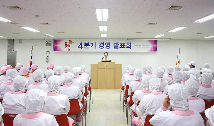 (주)올품은 10월 1일 본사 대강당에서 임직원 500여명이 참석하여 4/4분기 경영발표회를 가졌다.