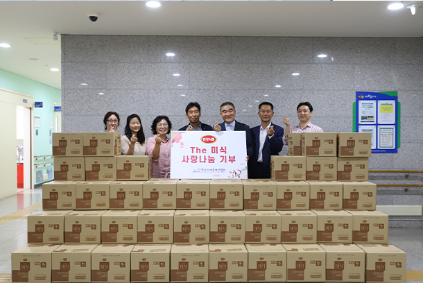 (주)한강식품(대표이사 박길연)은 지난 7월 13일 한국지체장애인협회 화성시 지회에 사랑나눔을 실천하기 위해 더 미식 비빔면 100박스를 기