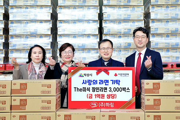 (주)하림은 지난해 12월 26일 익산시종합운동장에서 관내 저소득시설 및 저소득가구를 위한 라면 3,000상자(1억 1천만 원 상당)를 기탁했다고 밝혔다.