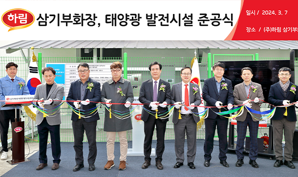 (주)하림이 지난 3월 7일 익산에 위치한 삼기 부화장 옥상에서 '태양광 발전 준공식'을 진행하며 재생에너지를 활용한 미래 경쟁를 강화하겠다고 밝혔다.