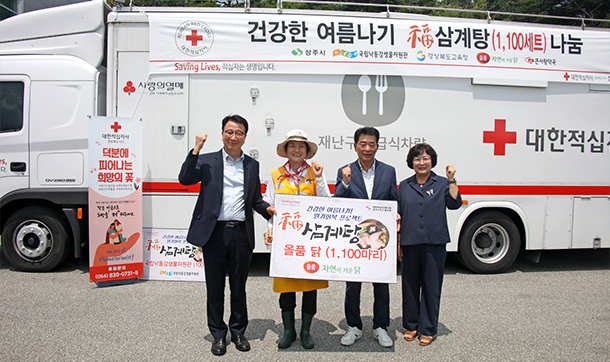 (주)올품은 지난 7월 12일 상주교육지원청 광장에서 대한적십자사봉사회 상주시지구협의회가 주최한 '취약계층 가족을 위한 복데이(초복) 행사'에 참여했다.