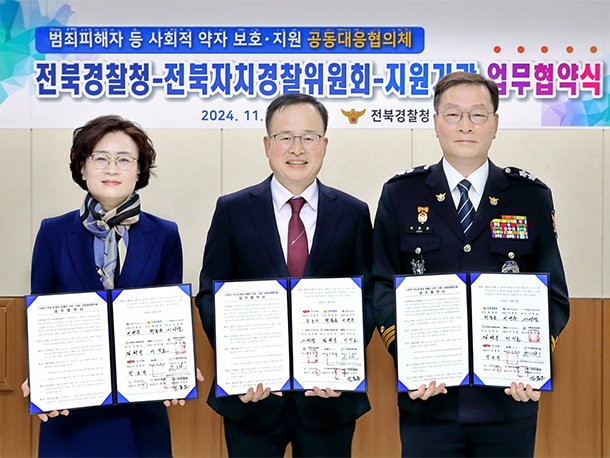 (주)하림은 지난 11월 19일 전북특별자치도 경찰청에서 최종문 전북경찰청장과 이연주 전북자치경찰위원회 위원장이 함께 참석한 가운데 '사회적 약자와 범죄 피해자 지원을 위한 MOU'를 체결 했다고 밝혔다.