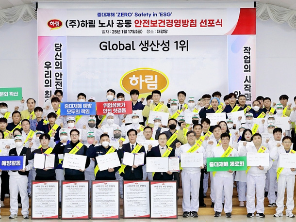 (주)하림이 지난 1월 17일 본사 금수강산홀에서 쾌적한 작업 환경 정착과 안전·보건 문화 확산을 위한 '노사 공동 안전보건경영방침 선포식'을 개최했다고 밝혔다.