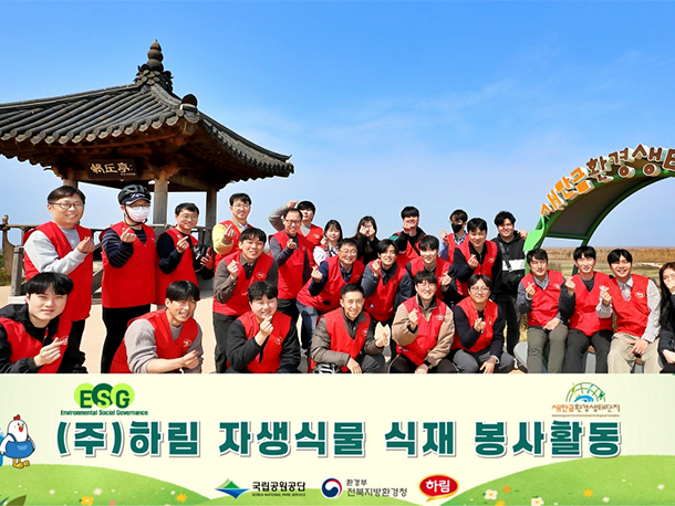 (주)하림은 지난 4월 2일 식목일을 앞두고 '새만금환경생태단지'를 찾아 생물 다양성 확대와 자연 생태 보전을 위한 '생태 단지 지역에 자생식물(야생화) 식재 지원 봉사활동'을 실시했다고 밝혔다.