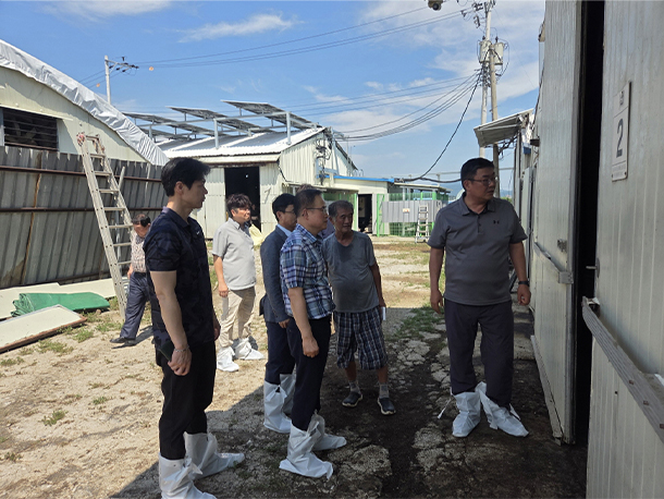 (주)하림이 최근 집중호우로 계사 침수 및 시설물 파손 등 큰 피해를 입은 계약 사육 농가를 찾아 수해 피해 현황을 확인하고 피해복구 위로의 뜻을 전했다.