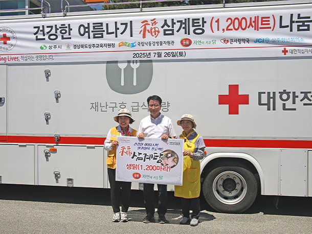 (주)올품(대표이사 강기철)은 본격적인 폭염속에 중복을 앞둔 지난 7월 26일 상주교육지원청 광장에서 열린 '취약계층을 위한 복삼계탕 나눔 행사'에 참여해 삼계탕용 생닭 1,200마리를 후원했다.